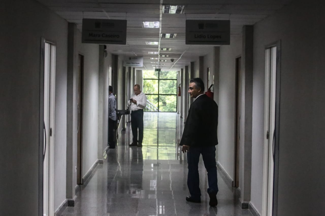 Depois de cinco anos, a reforma feita na Alems (Assembleia Legislativa de Mato Grosso do Sul) está concluída. Por cerca de R$ 40 milhões, conforme o primeiro secretário, deputado Zé Teixeira (PSDB), a obra englobou toda a Casa de Leis, desde a troca de piso, forro, fios, transformadores, que ainda eram de quando o prédio foi construído em 1986, até a troca da mobília de todos os 24 gabinetes. Para acabar com a disputa por gabinetes de tamanhos diferentes, algo que costumava acontecer em início de mandato, todas as 22 salas foram reformadas e estão com a mesma medida. “Não vai ter mais disputa por gabinete porque todos estão iguais. Toda a mobília está padrão", conta o deputado Zé Teixeira, que como primeiro secretário tem a função de gerenciar as contas da Casa de Leis. “Tirei as divisórias, troquei o piso, reformei tudo. Uma reforma que custou em torno de R$ 40 milhões, mas o valor exato preciso conferir”. De acordo com o fiscal da obra, Néder Sabib, a reforma começou em 2017 e terminou no fim do ano passado. “Está na fase de acabamento para corrigir alguns problemas, mas foi um processo de cinco anos e várias etapas de reforma”. O fiscal cita a reforma de todo o layout interno, padronização dos gabinetes. “A presidência passou por reforma de estrutura, elétrica, cabeamento. A cobertura foi preparada para, pensando no futuro, receber placa solar”. Também teve reforma para adequação da acessibilidade, adequação das exigências do Corpo de Bombeiros e sistema de iluminação. Hoje (1º) a Casa de Leis abre as portas para a posse dos 24 deputados estaduais eleitos no ano passado. A cerimônia será realizada a partir das 9h, no Plenário Deputado Júlio Maia, na sede do Parlamento. Tomarão posse os eleitos: Mara Caseiro (PSDB), Paulo Corrêa (PSDB), Zeca do PT (PT), Jamilson Name (PSDB), Zé Teixeira (PSDB), Lídio Lopes (Patriota), Pedro Caravina (PSDB), Coronel David (PL), Pedro Kemp (PT), Lucas de Lima (PDT), Junior Mochi (MDB), João Henrique Catan (PL), Gerson Claro (PP), Londres Machado (PP), Antonio Vaz (Republicanos), Rafael Tavares (PRTB), Renato Câmara (MDB), Amarildo Cruz (PT), Neno Razuk (PL), Pedrossian Neto (PSD), Lia Nogueira (PSDB), Marcio Fernandes (MDB), Roberto Hashioka (PSDB) e Rinaldo Modesto (Podemos).